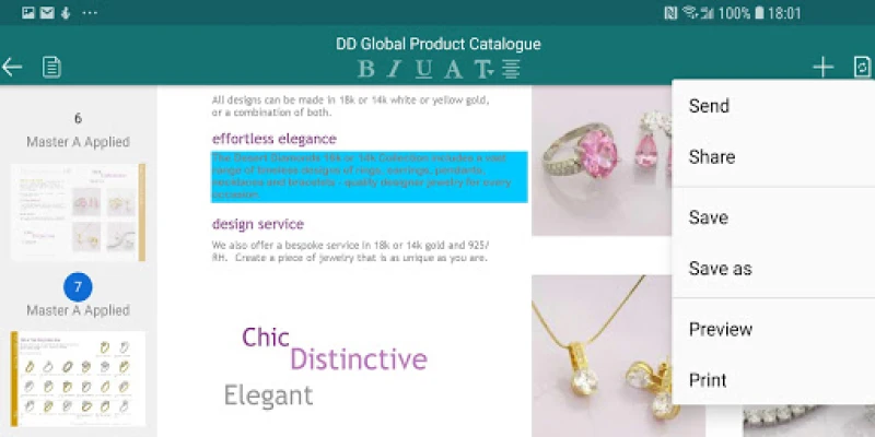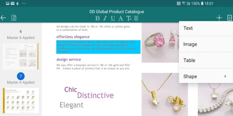 Publisher app has full compatible object library for PUB document, you can easily edit PUB document object with same object style settings. Publisher app supports the text, shape(rectangle, round rectangle, oval, triangle, parallelogram, trapezoid, diamond, pentagon, circle, arrow, star, line, line with arrow, dashed line, curve, scribble, etc.), picture, table editing, and also allows you insert new text, shape, picture and table. Publisher app has a similar object format window, you can easily format these objects, change text font, color, border, fill and rotation, change picture, table, shape, border, fill and rotation. The table element has same presets style with PUB table object. You can easily cut/copy/paste object, insert and delete page, set page background, and so on. Bring to front and send to back object, so that you can rearrange these elements. All of these will be very convenient for your editing.
